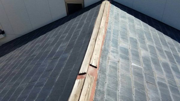 スレートはこの板金部分が強風で知らない間に飛ばされていたりするので、こまめなチェックが必要です。